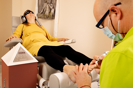 Nutzen Sie den Touch Synchro complete während ihrer Behandlung wie etwa einer Pedicure,